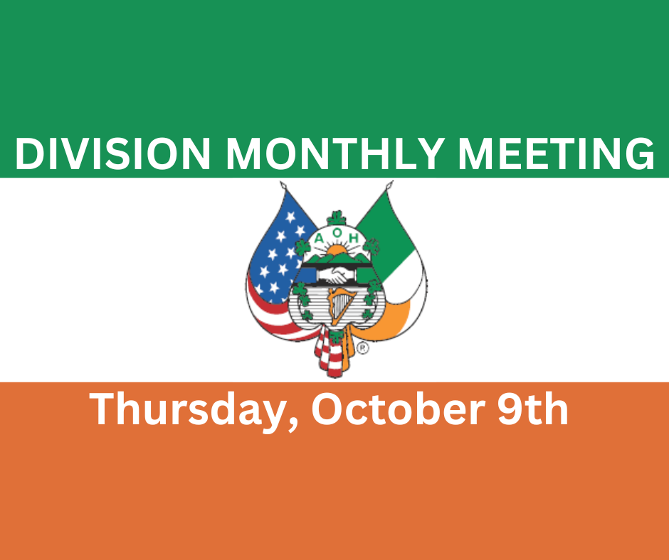 Our monthly meeting is Thursday, October 9th, 8:00pm at St. Philip Neri Catholic Church
